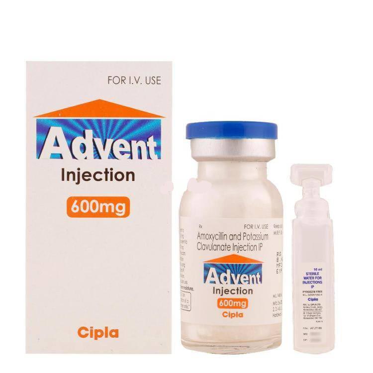 ADVENT 600MG INJECTION belongs to a group of antibiotics known as penicillin combination. It is a broad-spectrum antibiotic that works against various types of bacteria. ADVENT 600MG INJECTION is made up of two medicines: Amoxicillin (the active part of antibiotic) and Clavulanic acid (that boosts the efficacy of the amoxicillin). ADVENT 600MG INJECTION is generally prescribed to prevent middle ear and sinus infections, throat or lung respiratory tract infections, urinary tract infections, skin infections, soft tissue infections, dental infections, joint and bone infections.