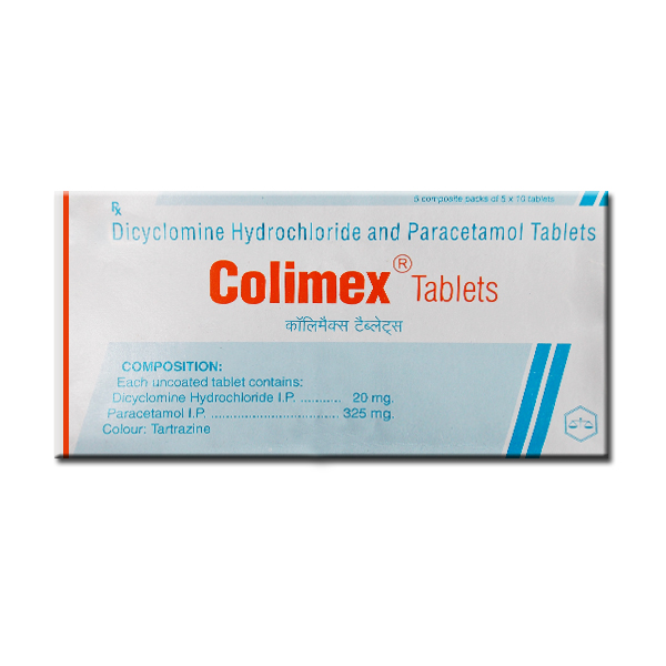 Colimex Tablet is a combination medicine used in the treatment of abdominal pain. It works effectively to reduce abdominal pain and cramps by relaxing the muscles of the stomach and gut.