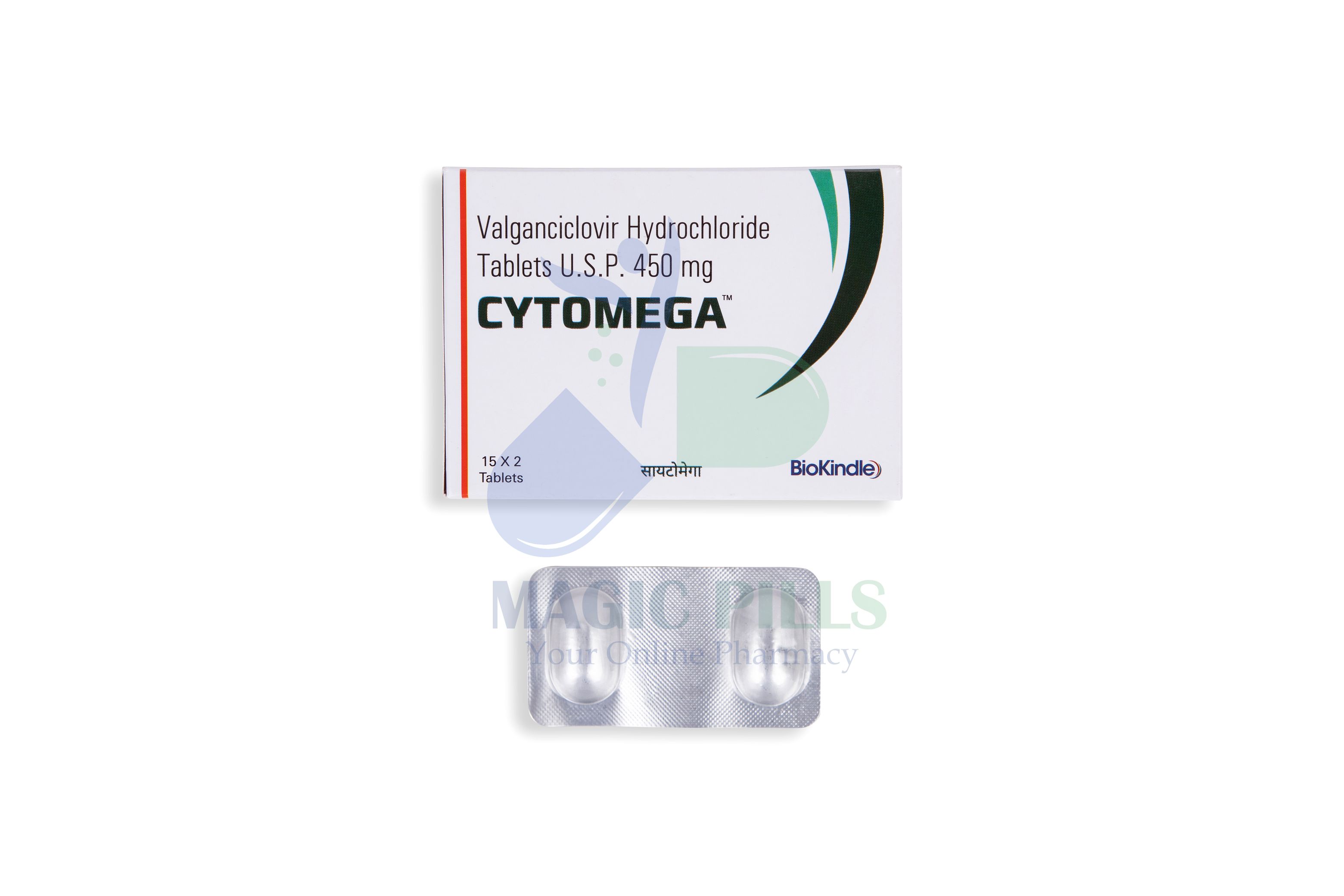Cytomega 450 mg Tablet is an antiviral medication. It prevents the multiplication of virus in human cells. This stops the virus from producing new viruses and clears up your infection.