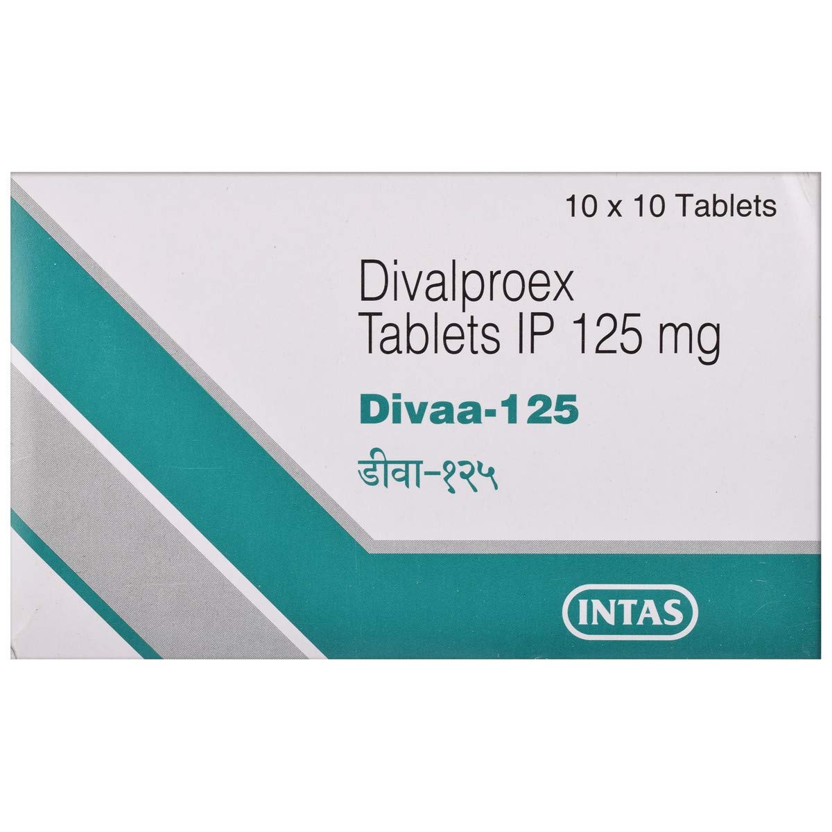 Divaa 125 Tablet is a medicine used to treat epilepsy. It helps prevent and control seizures (fits). It is also used in the prevention of migraines.