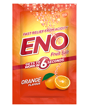 Eno Powder provides quick relief from acidity. It works on all the symptoms of acidity, including a sour taste in the mouth, burning in the throat, burning in the chest, stomach discomfort, heaviness and burning in the stomach. Eno powder gets to work on acidity in just 6 seconds.