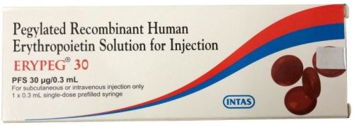 Erypeg 30 Injection is a medicine used in the treatment of anemia due to chronic kidney disease and cancer chemotherapy. It works by stimulating the stem cells of the bone marrow to increase red blood cell production. At the same time, it acts on red blood cells to protect them against destruction.