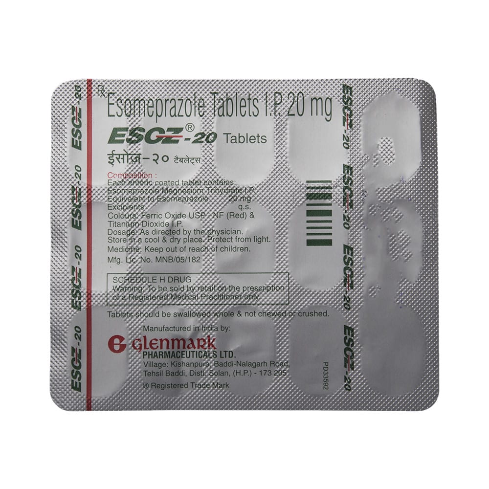 Esoz 20 Tablet is a medicine that reduces the amount of acid produced in your stomach. It is used to treat acid reflux, peptic ulcer disease, and other problems in your food pipe. It is also used to prevent and treat stomach ulcers.