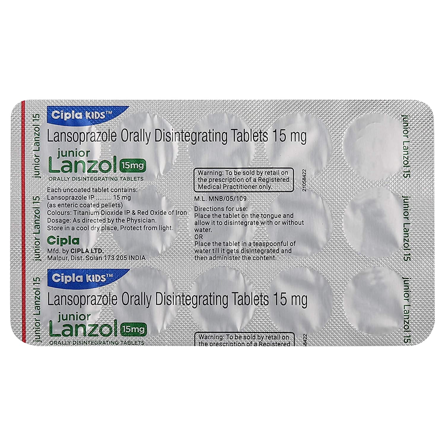 GERD is a chronic (long-term) condition that is like having heartburn consistently rather than just occasionally. It happens because a muscle above your stomach relaxes too much and allows stomach contents to come back up into your esophagus and mouth. Junior Lanzol 15mg Tablet DT belongs to a group of medicines called proton pump inhibitors.