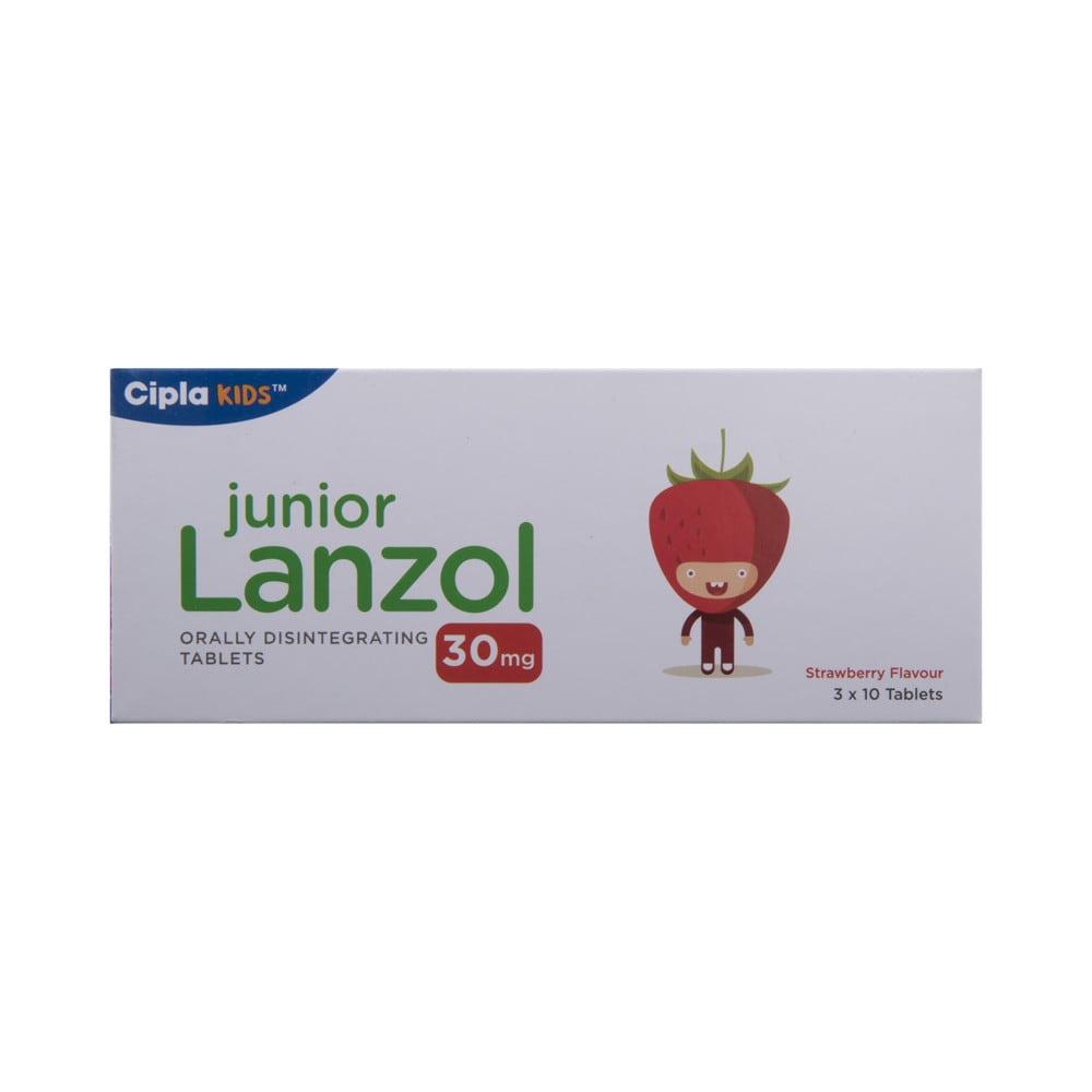 GERD is a chronic (long-term) condition that is like having heartburn consistently rather than just occasionally. It happens because a muscle above your stomach relaxes too much and allows stomach contents to come back up into your esophagus and mouth. Junior Lanzol 30mg Tablet DT belongs to a group of medicines called proton pump inhibitors.