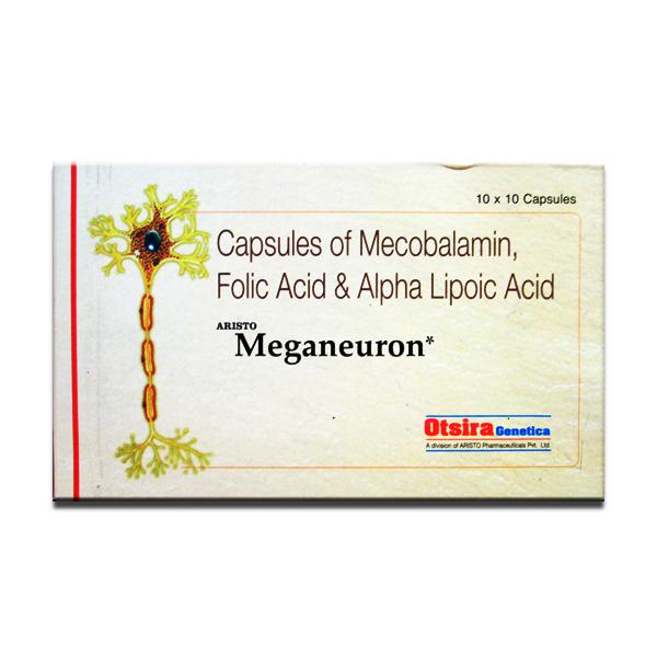 Meganeuron capsule contains Methylcobalamin, Alpha Lipoic Acid, and Folic acid. Methylcobalamin is an essential nutrient for neurons and Alpha Lipoic Acid is a powerful antioxidant that protects the neurons from oxidative stress.