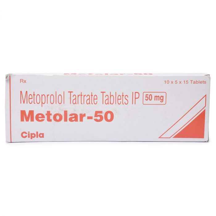Metolar-50 Tablet 15’s belongs to a group of medicines called as beta-blockers used alone or together with other medicines to treat high blood pressure (hypertension), heart related chest pain (angina)Â and protect heart after heart attack (myocardial infarction). Besides this, it also help in relieving symptoms of migraine related headache and tremors (fits). High blood pressure adds to the workload of the heart and arteries.