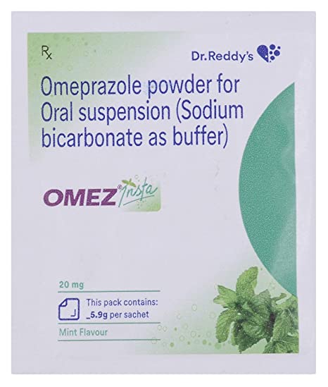 Omez Insta Mint Sachet 5.9 gm belongs to the class of drugs known as Proton pump inhibitor (PPIs) which reduces the amount of acid your stomach makes. It treats gastroesophageal reflux disease (GERD), stomach ulcer, and Zollinger Ellison syndrome (overproduction of acid due to pancreatic tumour).