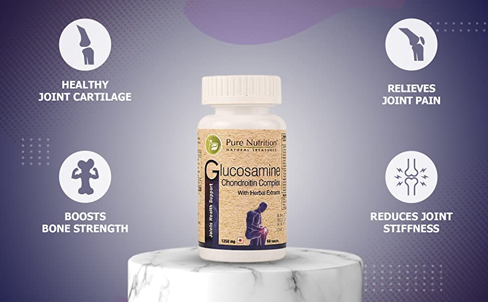Pure Nutrition Glucosamine Chondroitin Complex with Herbal Extracts Tablet is formulated to prevent joint deterioration and also reduces pain. The tablet is useful in building cartilage and reducing and joint stress.