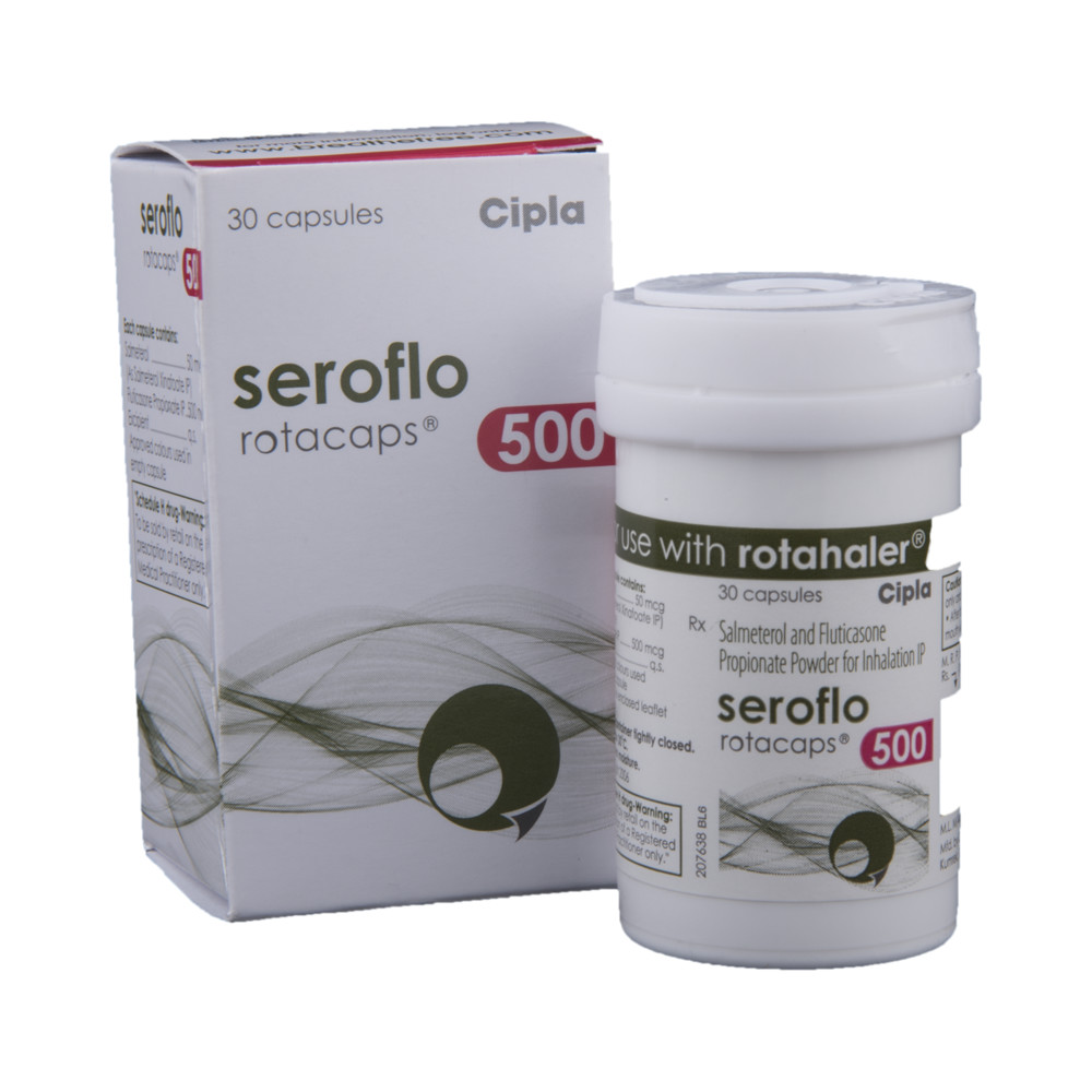 Seroflo 500 Rotacaps is a respiratory medication, primarily used to treat and prevent respiratory disorders like asthma attacks and chronic obstructive pulmonary diseases (COPD). Asthma is a breathing problem in which airways narrow, swell, and produce extra mucus, leading to difficulty breathing. COPD is a group of lung diseases with emphysema (shortness of breath) and chronic bronchitis (inflammation of the lining of your bronchial tubes).