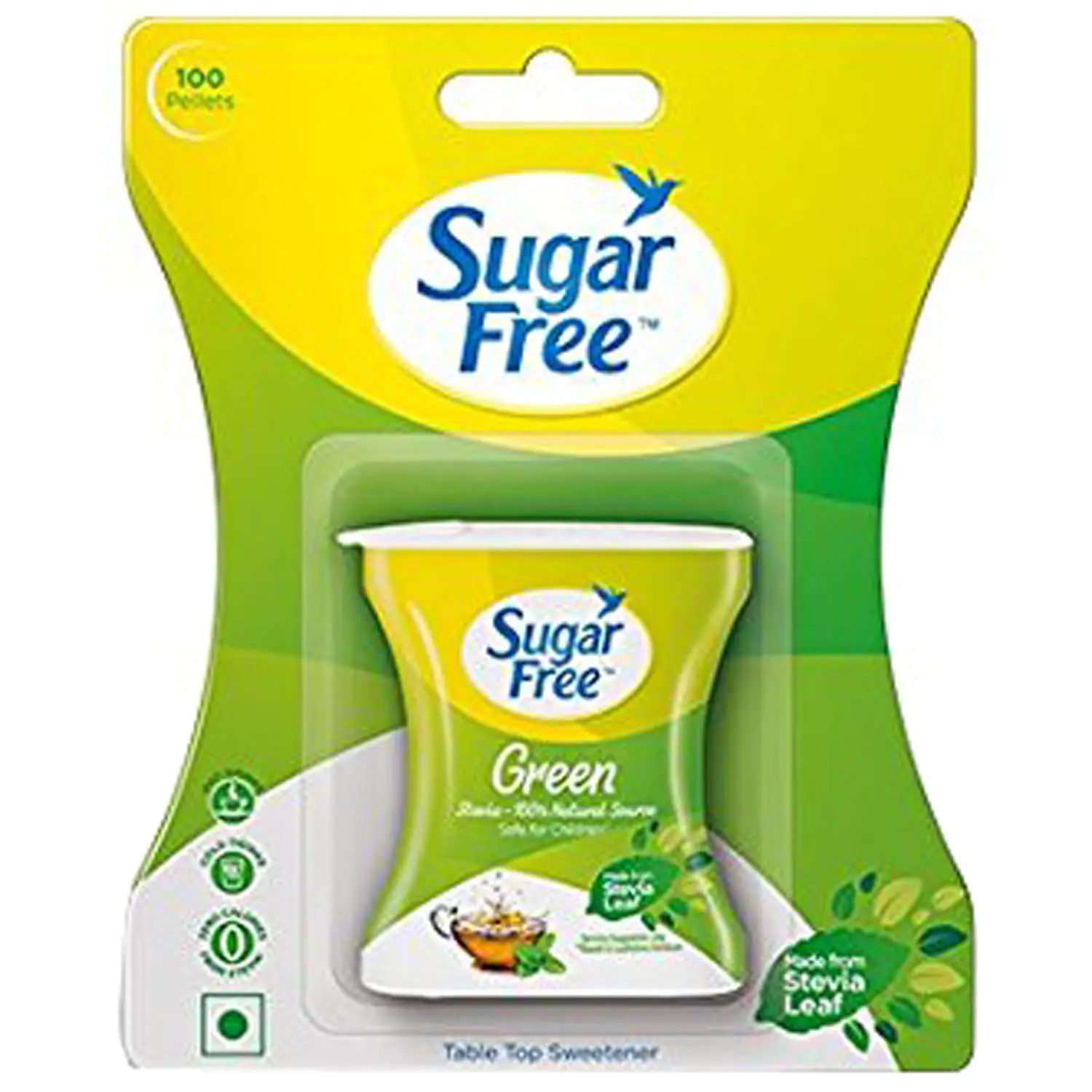 Sugar-Free Green Stevia Pellets is made from a natural source of stevia plants whose leaves are naturally sweet. Stevia leaves are also known as Meethi Tulsi in India. Sugar-Free Green is sweet as sugar, and helps save approximately 20 calories for every 5g of sugar replaced with 1 pellet and can be used for a wide variety of hot and cold beverages