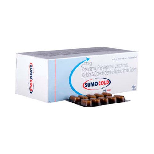 Sumo Cold Tablet is used to treat common cold symptoms. It provides temporary relief from stuffiness in the nose. It also helps to relieve allergy symptoms like runny nose and watery eyes
