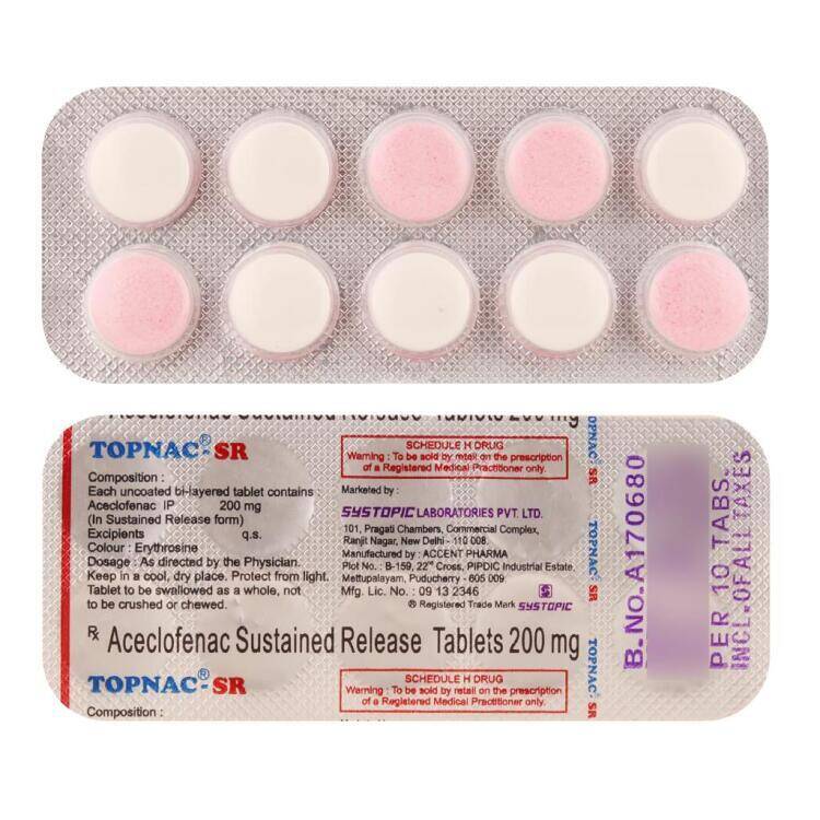 TOPNAC SR TABLET belongs to a group of medicines called Non-Steroidal Anti-Inflammatory Drugs (NSAIDs) or pain killer used to reduce and relieve pain, redness, and inflammation (swelling) in patients suffering from osteoarthritis, rheumatoid arthritis and ankylosing spondylitis. Rheumatoid arthritis is an autoimmune disease in which the immune system of the body attacks its own cells and cause damages, thereby causing joint pain with inflammation.