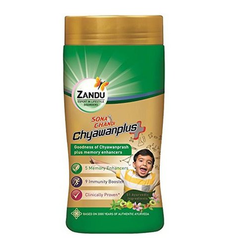 Zandu Sona Chandi Chyawanplus energises the body and fights weakness. It is a mixture of different herbs that work together to nourish and strengthen the body. It is useful in improving cognitive abilities and fighting free radical damage.