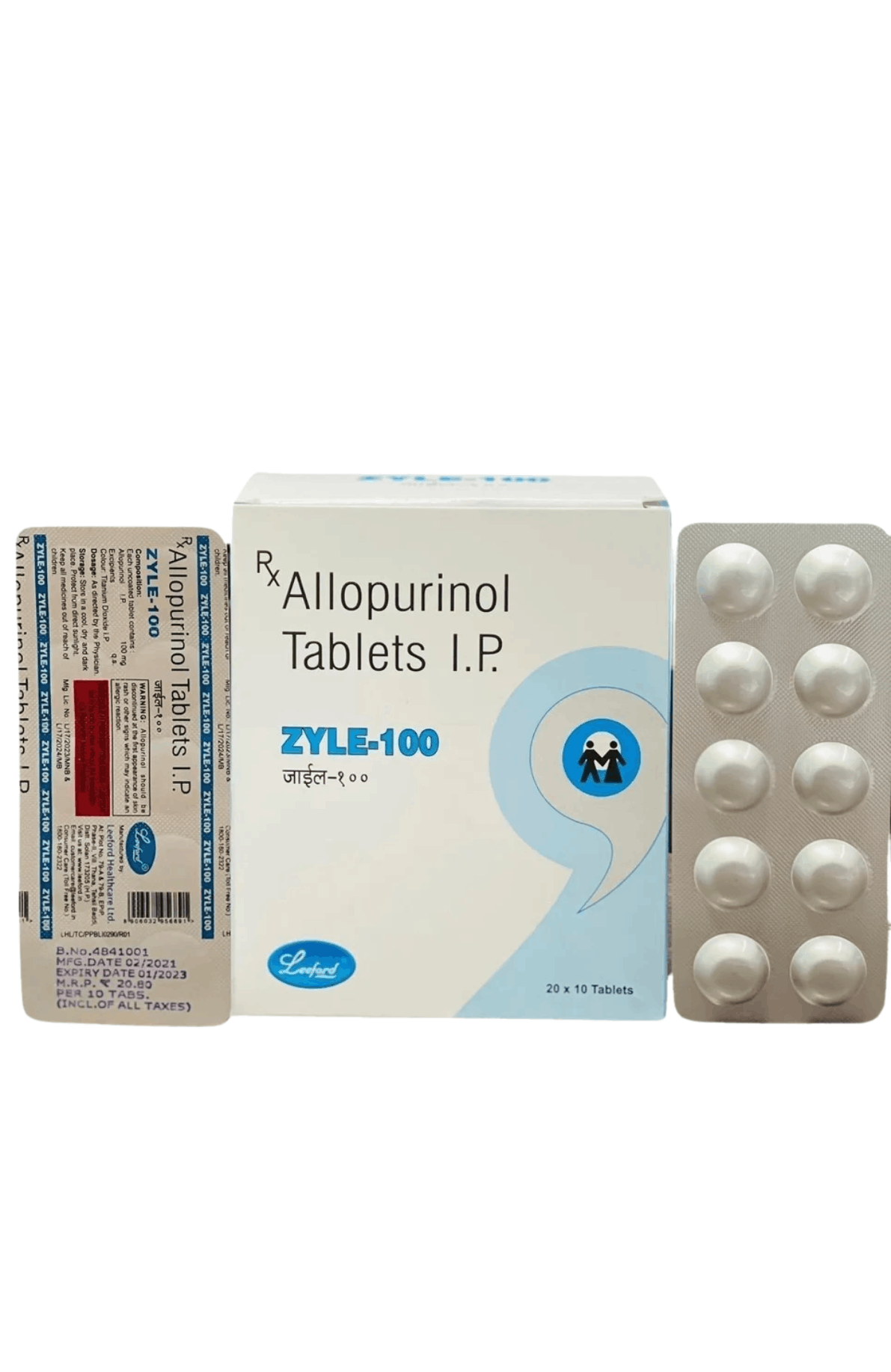 ZyLE 100 Tablet is a medicine used to treat and prevent gout. Gout happens when there is too much uric acid in your body, and it forms crystals that can appear around your joints and kidneys and cause pain. This medicine helps to keep uric acid levels low.