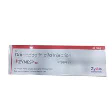 Zynesp 40 Injection is an erythropoiesis-stimulating agent (ESA). It works by stimulating the bone marrow (soft tissue inside the bones which produces red blood cells) to produce more red blood cells.